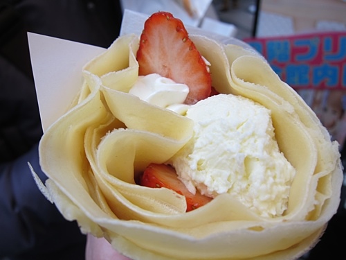 到日本一定要吃可麗餅,心齋橋的歐吉桑可麗餅生意很好,爸媽第一次吃這種軟皮可麗餅,他們都喜歡。我們站在店前邊吃邊看路人,媽媽不斷稱讚大阪女生的裝扮,認為比台灣時髦,我跟媽媽說東京女生更會打扮,大阪其實有點LOW,不過一致同意日本小孩都穿得很得體,台灣小孩穿著太隨便。