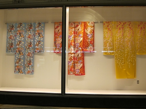 每次出門或回飯店經過百貨公司,都會瞧瞧櫥窗裡的和服,掛著像是一件藝術品。回到飯店就懶得出門了,下樓去便利商店買便當打發晚餐。這一天全靠雙腳移動,爸媽跟著我走了一天,掌聲鼓勵。