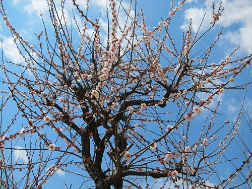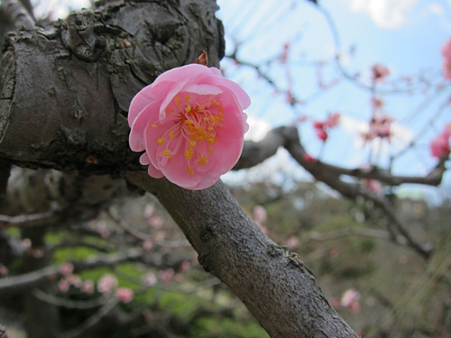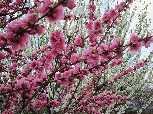 送走桃園,迎來梅園,不過梅花時節已過,只剩枯枝和少許殘花。坐在梅園的板凳上,邊曬太陽邊用簡單的午餐,四月了,怎麼還這麼冷。