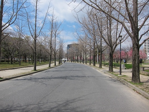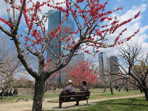 前往大阪城路上,木蘭開得很美,為沿途的蕭瑟景象增添些許生氣。沒想到這個冬天如此漫長,大阪城四周上千棵櫻花樹,不見一朵花。我和爸媽頻嘆可惜,只能運用想像力為枯枝染上色彩,往後旅途中,我們的想像力用了一次又一次。