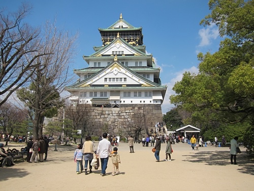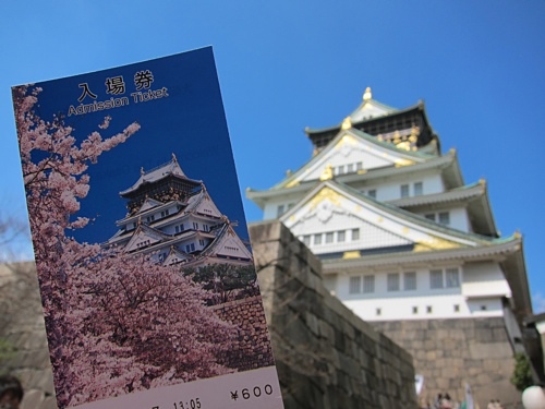 投幣買票排隊進入大阪城,遊客很多,幾乎都是日本人,無法想像往年賞櫻時節再加上許多外國遊客的畫面。日本人擅於包裝,門票根據四季而變化,很有紀念價值。