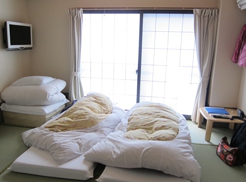 進房沒多久,爸媽鋪好床倒頭就睡,我有點傻眼地不知道要幹啥。日式房間比前幾晚的西式感覺寬敞,活動起來也比較方便。玄關處有洗手臺和鏡子,可以刷牙、吹頭髮、洗水果、煮水、泡茶,另一邊有置物櫃擺放行李。