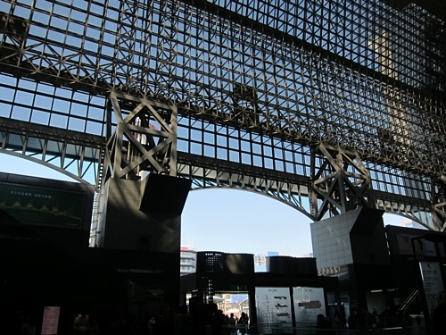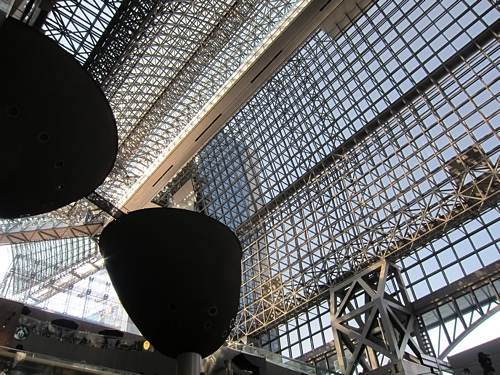 我們回到京都車站,這座龐然大物讓人目瞪口呆,我無法想像它的現代與巨大如何安置在京都這樣古老細緻的城市裡,置身其中很容易忘記這裡是京都。電扶梯的設計是一絕,直線層層而上,彷彿沒有盡頭。頂樓花園種了一些竹子,可以俯瞰京都,被群山環繞的盆地。