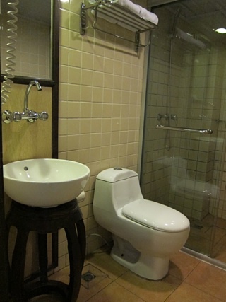 家具狀況都行,不過牆壁花了臉,看起來頗礙眼。洗臉台設計不佳,水龍頭太高,水濺得到處都是。冷暖氣機運作良好,洗好的衣服在淋浴間滴完水後移至空調下方,將溫度調高,隔天起床衣物全乾,暖氣機兼烘衣機,一機兩用。熱水限時供應,早上七點至半夜十二點。