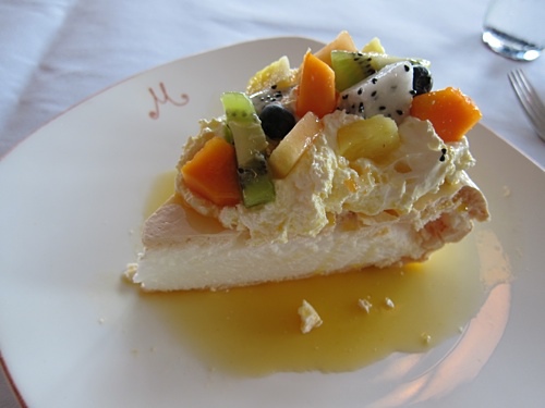 ),所以我把珠珠都給她了,還切了一小塊跟他們分享。奶油蛋白餅口感輕柔,外層的酥餅像跳跳糖般在嘴裡彈跳融化,口味偏酸,讓人印象深刻。可是我無法說很喜歡,只能說真的很特殊,不過網路上無人不稱讚。
