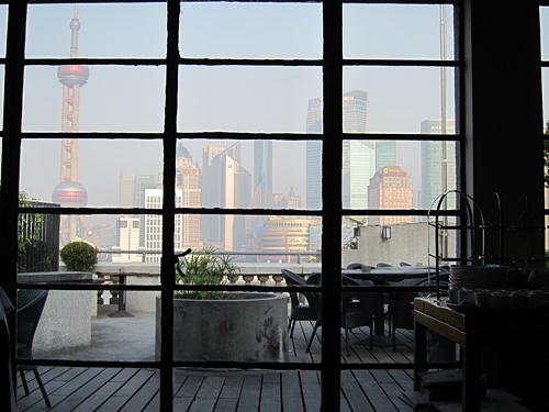 和G一家約在M on the Bund喝下午茶,M和New Heights(外灘3號)是外灘唯一兩家有露台的餐廳,N比M便宜一些,但是裝潢不合我意,極簡美式風格,讓我覺得浪費大好空間,和建築外觀也不相配,於是選擇M。