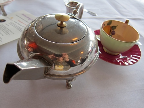 下午茶有套餐也可以單點,因為很想試試他們的招牌--奶油蛋白餅(不在套餐裡),所以我選擇單點這個和一壺茶。如果沒記錯,一塊奶油蛋白餅要價68,茶一壺45,我已經可以預見Q桑的反應,什麼?一塊蛋糕台幣300多!這個價位能夠踏進外灘那排餐廳算便宜,用餐可就貴了,下午茶是上高級餐廳的省錢方法。