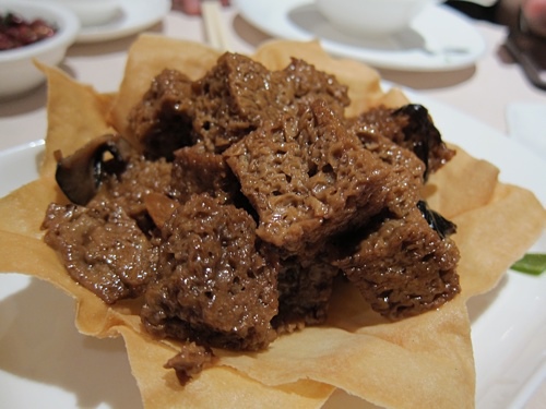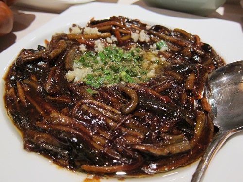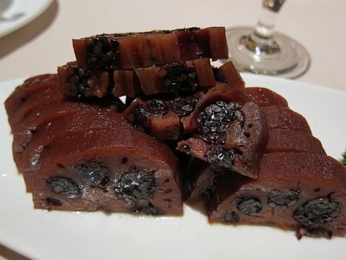 ↑糖藕,我指名要吃的,可是做得不好,沒有軟糯,還太硬了。一般都鑲白糯米,鑲黑糯米少見。