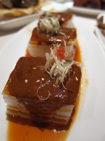 ↑涼粉弄成方形,一片片堆疊而上,看起來像東坡肉。