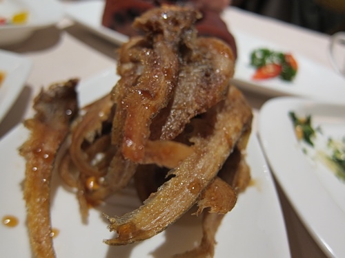 W一來就急著和我『交換禮物』,兩個人剛好都準備了小東西給對方,這就是女生可愛之處,男生比較不來這套。我們叫了滿滿一桌子菜,餐具不斷移來移去好挪出空間上新菜,這場面讓我再度深深覺得住在亞洲真幸福,太愛吃了沒辦法,這輩子可能是餓鬼投胎來著。