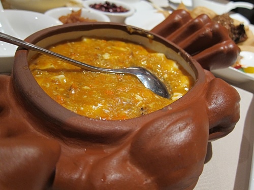 ↑桂花酒釀圓子,跟多年前在台灣吃過的酒釀湯圓很不一樣,記得有股濃烈氣味,當時我不敢吃,從此沒再點過。可是這個沒有特殊氣味,湯頭和圓子都挺好的,我懷疑兩者『酒釀』不同。