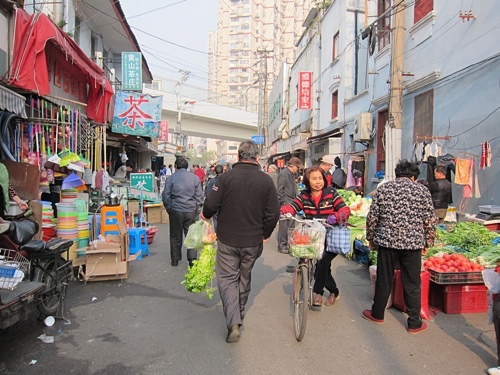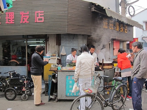 前往多倫路文化名人街途中,鑽進菜場裡。亞洲的傳統市場活力十足又好玩,平價美食臥虎藏龍。買了一塊燒餅,這種傳統作法在台灣不多了,中國卻隨處可見,再過二十年,會不會同樣變少?如果現代化是機器取代人力,那麼我不希望食物現代化。