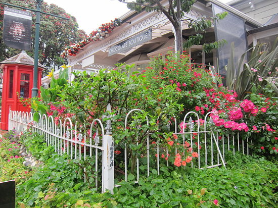 研討會結束那天,我和他撐傘走在雷雨中,穿過公園和大大小小的路口,往Parnell Road前進。一條充滿藝廊和小店的可愛街道,多為老舊房子,甚至留有殖民時期庭院有著池塘的白色木造建築,沿路種滿花花草草,繽紛爛漫。