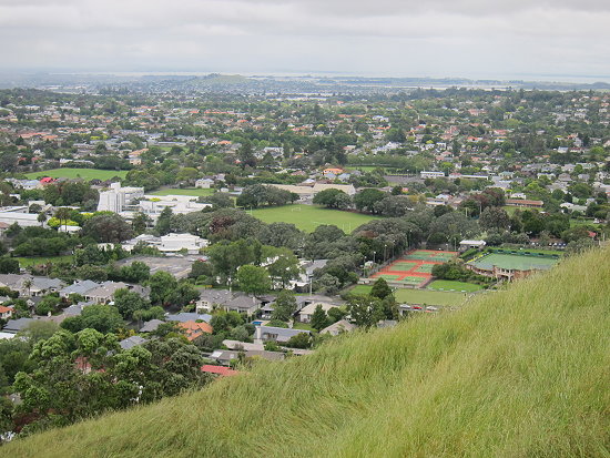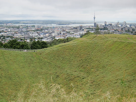 離開那天上午,搭公車去Mt Eden。親眼目睹才看得出壯觀的火山口,繞著走一圈。奧克蘭盡收眼底,火山多、房子多、樹多,綠色之城。
