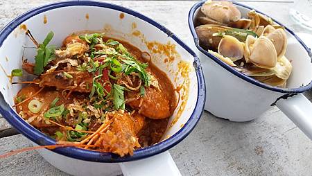 我在台期間,他在農夫市場結識了印尼菜販,時常有沒見過的食材。滿臉笑容的老闆對我們總是隨便算錢,只拿整數,還半買半相送。跟夫婦倆說我們下個月要搬家了,以後可能無法常來。也許之後可以請教他們如何種菜,在新家的後院。Kaffir萊姆第一次見,個頭短小渾圓,表皮凹凸不平,香氣清新迷人,東南亞料理不可或缺的檸檬葉便是來自它的葉子。