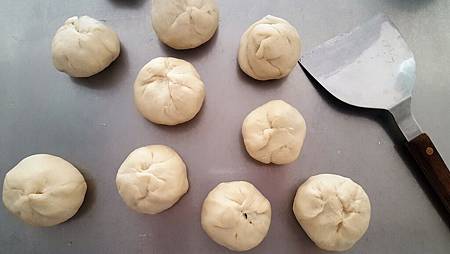做蔥油餅,手臂太久沒工作,麵糰揉得累。他從台灣帶來的鍋鏟真好用,可以切割麵糰。