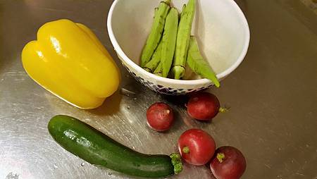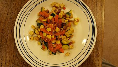 他用新鮮薑黃炒豆乾櫛瓜紅蘿蔔,好好味。