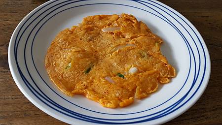 冰箱沒什麼菜了,做泡菜煎餅,適逢雨天。