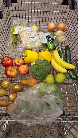 準備閉關寫Paper,沒時間上農夫市場,在超市買菜,俯瞰推車,突然覺得我們吃得好健康。
