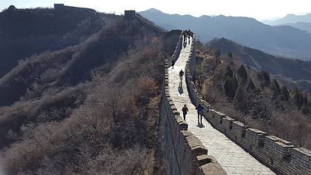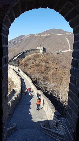 長城很美,但更美的是一對兒女攙扶頭髮花白的高齡母親登長城,年輕如我們都爬得叫苦連天。迎面走來一位遊客,發出讚嘆對老太太說:你好厲害!祝你活到九十九!爬上置高點,學老外和家人視訊,讓他們看看這一條盤踞北方的巨龍。臨時在沒有霾害、陽光普照、溫度不至於太低的日子上長城,是個很棒的決定。長城後,鐵腿好幾天。